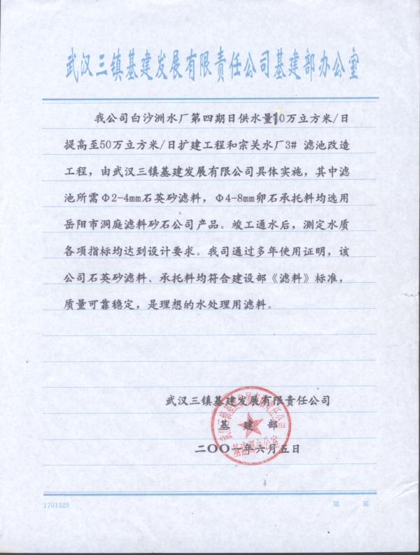 岳阳市洞庭滤料砂石有限公司 DONGTING LAKE IN YUEYANG CITY, SAND FILTER LTD.