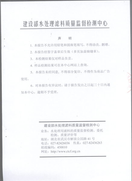 下一篇: 石英砂滤料(0.6mm~1.2mm)检测报告