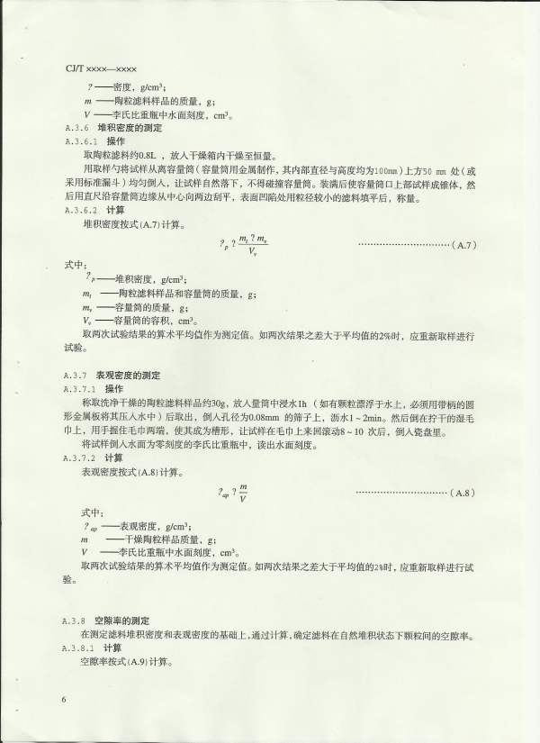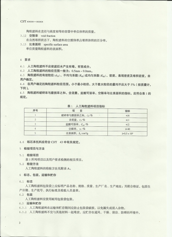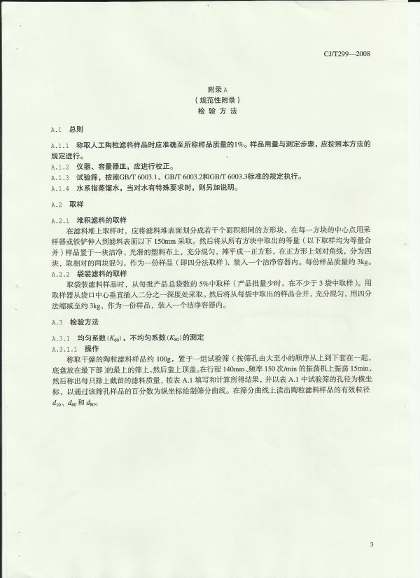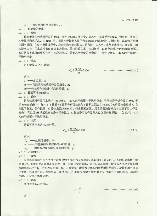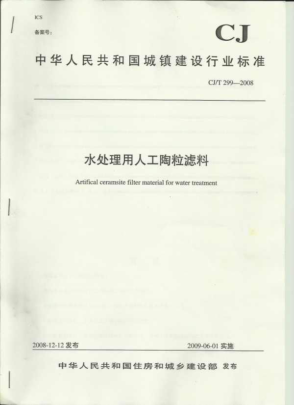 水处理用人工陶粒滤料 GJ/T 299 ―2008