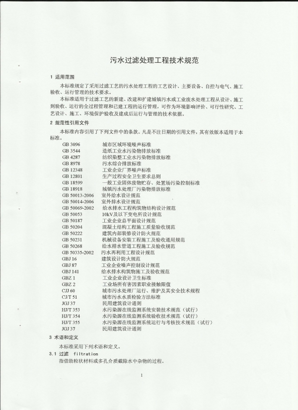 污水过滤处理工程技术规范