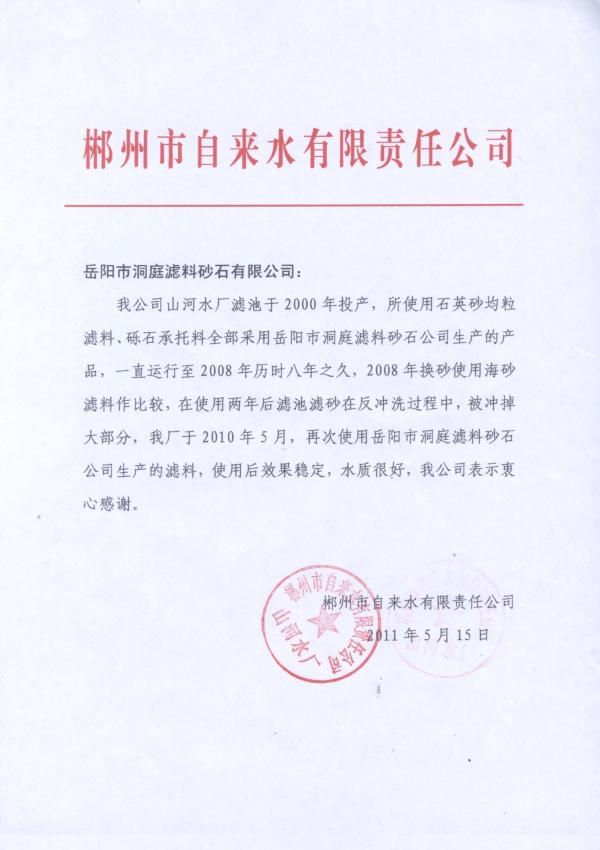 岳阳市洞庭滤料砂石有限公司 DONGTING LAKE IN YUEYANG CITY, SAND FILTER LTD.