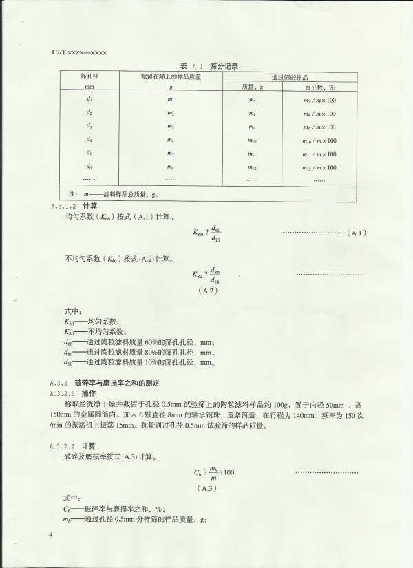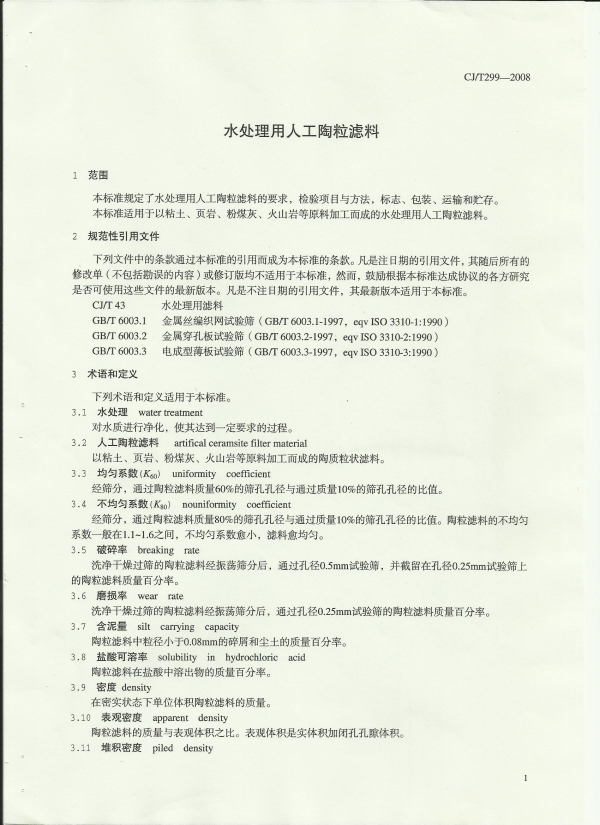 水处理用人工陶粒滤料 GJ/T 299 ―2008